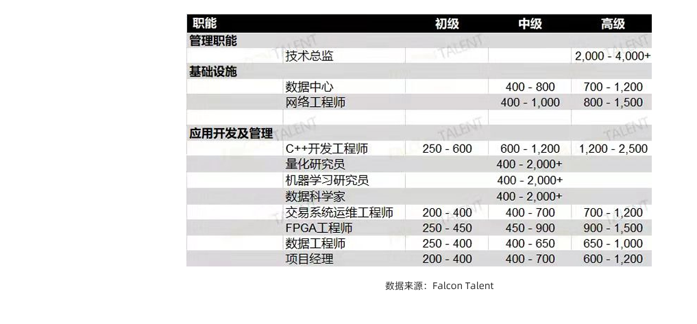 国内的量化行业目前正处于一个高速发展的阶段,整个量化市场在2018年以前大体在1000亿左右的量级,2019年激增达到了2500亿左右的规模,发展到现在已超5000多亿的规模。处在这一产业中的从业者,也迎来了职涯重大发展和薪酬提升。(*信息来源于东方网报道)